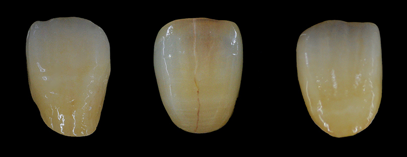 従来陶材やレジン素材に蛍光性を持たせる事により、少しでも天然歯に近づけようと工夫がされて参りましたが、「フルシンビクラウン」はジルコニア素材そのものに蛍光性を持たせる事が出来ます。この特性により、ジルコニア独特の色調の浮き上がり感や、ギラギラとした光沢が軽減され、より天然歯に近い質感のクラウンを製作出来る様になりました。