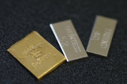 ゴールド色のハイカラット焼き付け合金から